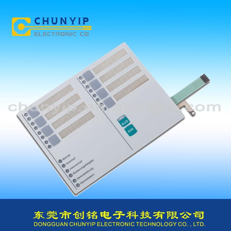 薄膜開關(guān)已應(yīng)用于各行業(yè)的儀器儀表上使用,薄膜開關(guān)無疑是較低配套成本同時增加整機產(chǎn)品身價,創(chuàng)銘使用進(jìn)口材 料保障產(chǎn)品質(zhì)量讓客戶獲得理想產(chǎn)品。就是生活中的常用電子產(chǎn)品也是不離開薄膜開關(guān)的,比如說,PET薄膜開關(guān)指示。