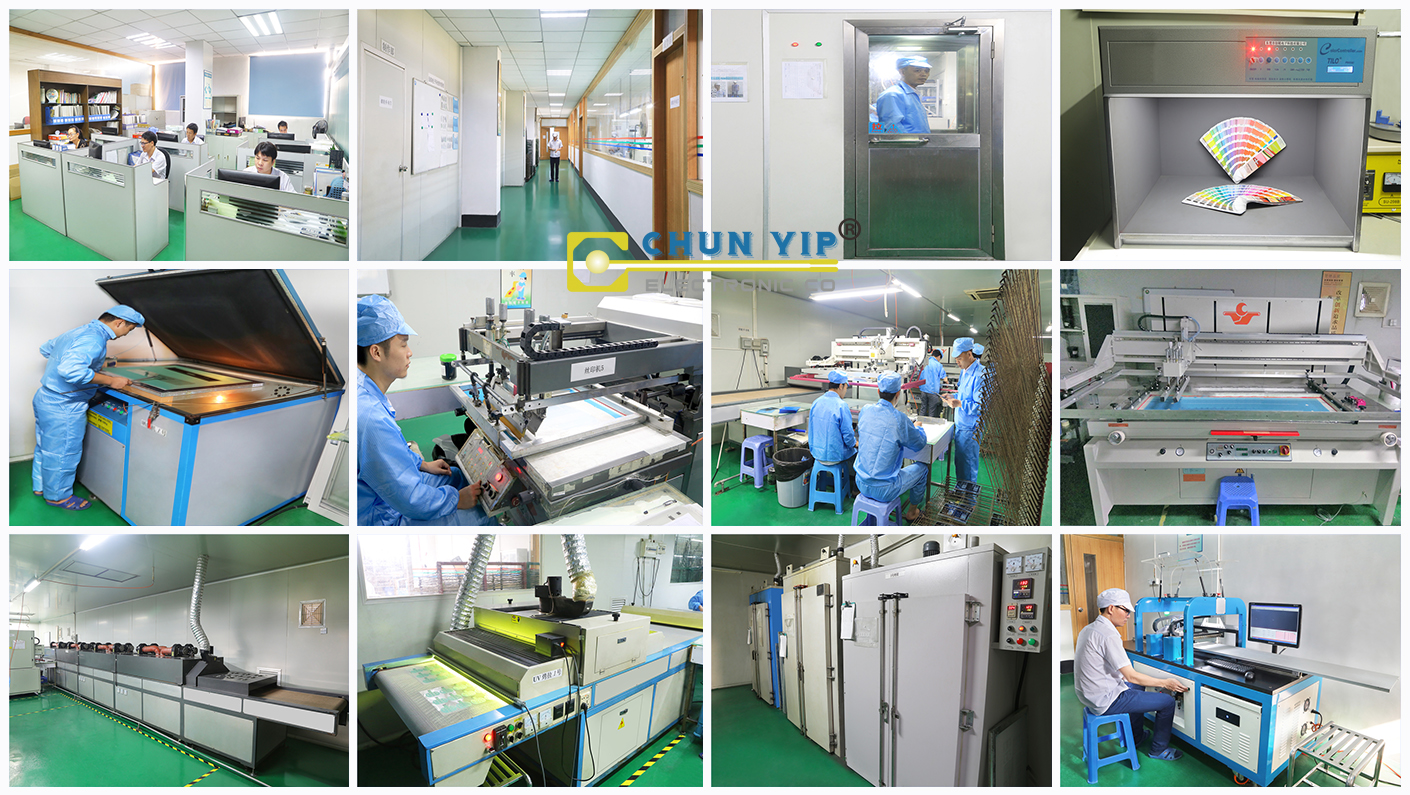 CHUNYIP絲印車間是下十萬級無塵室,除半自動絲印機8臺外,配有菲林曝光室、調(diào)墨室、紫外線干燥機一臺、紅外線干燥機一臺。還有一個烤箱室,有三個烤箱。